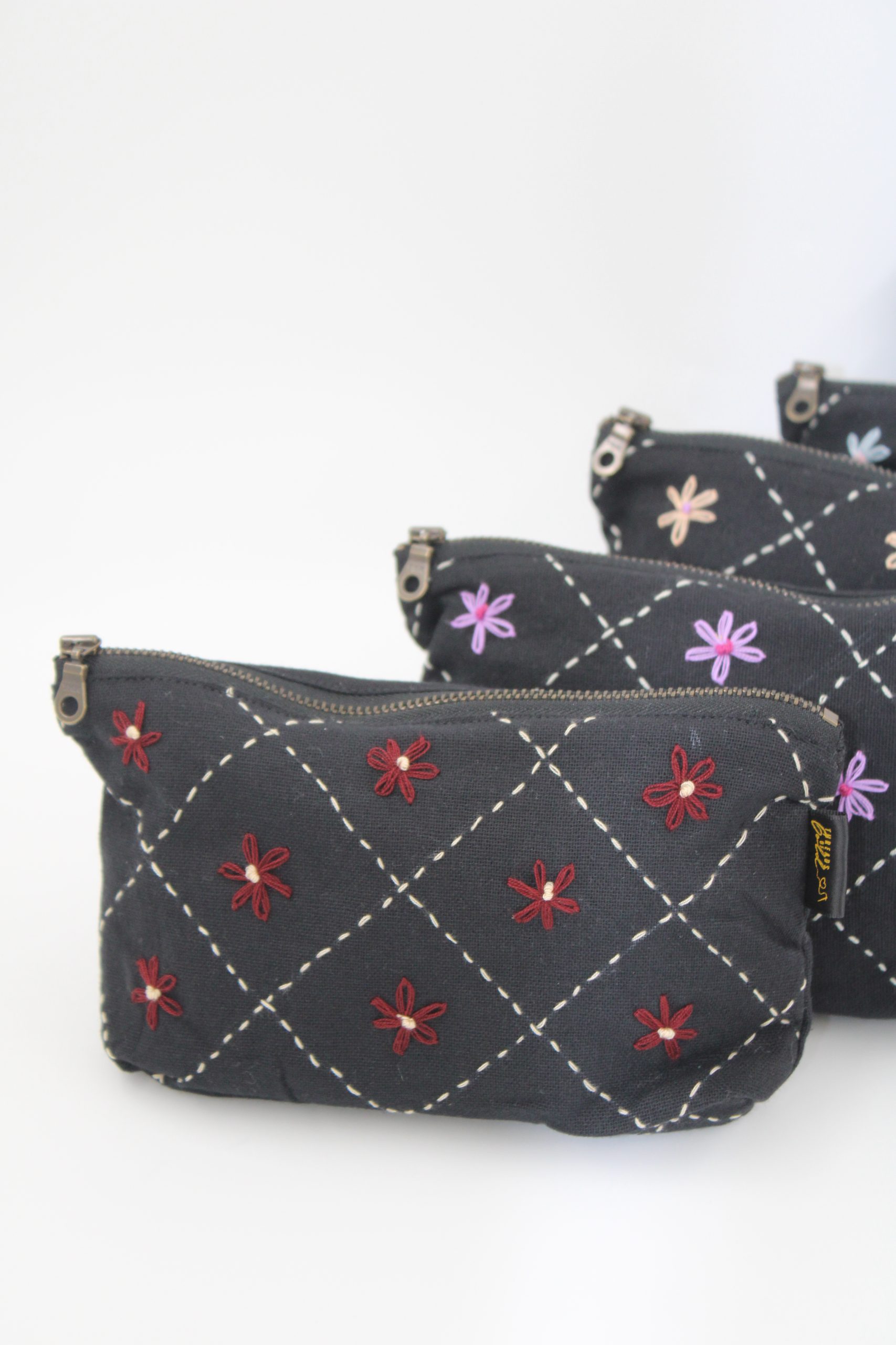 The small details are what makes this pouch special. This multi-use durable pouch is perfect for your writing tools or keeping small things organized. It is made with locally sourced, durable canvas fabric and each pouch is hand embroidered with care.